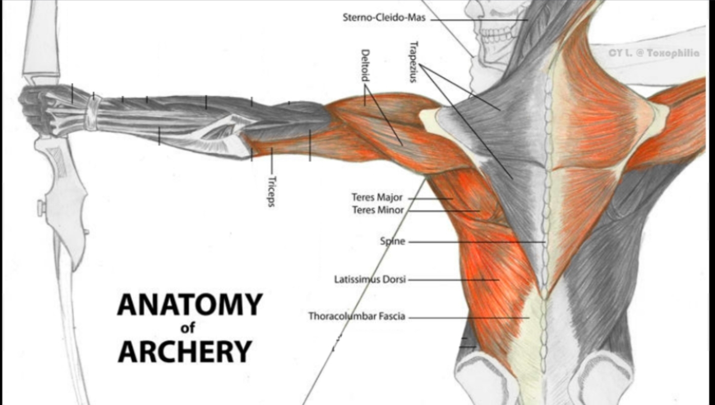 Une illustration très parlante des groupes de muscles en action lors du tir. De quoi mieux comprendre les efforts à fournir et optimiser la gestuelle.